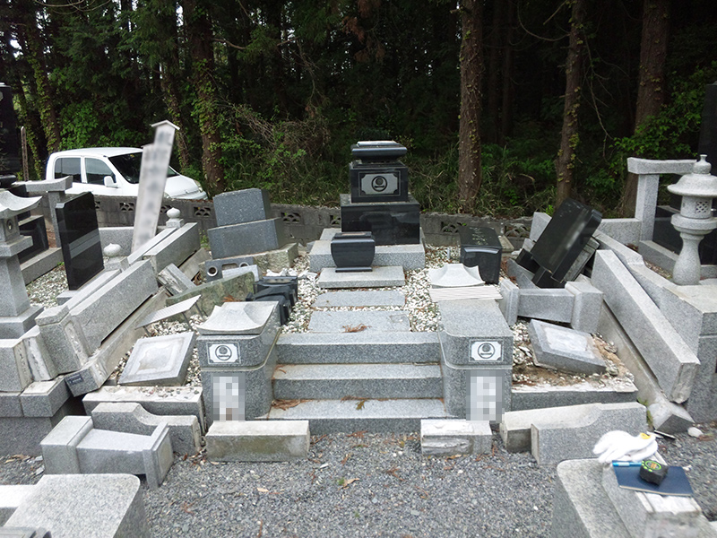 地震・震災の影響で、墓所が倒壊してしまった。